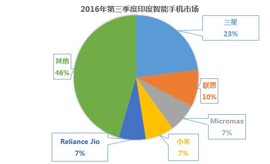 IDC預測,印度有望在2017年超越美國,成為全球第二大智能手機消費市場。在國內手機市場疲軟的情況下,到印度去正在成為中國手機廠商最熱衷的事,目前在印度市場表現(xiàn)出色的有聯(lián)想、小米、金立、OPPO、vivo等。根據(jù)IDC發(fā)布的《手機季度跟蹤報告》,2016年第三季度,聯(lián)想(包括摩托羅拉)躍居印度智能手機市場第二;小米位列第四,出貨量環(huán)比翻番。