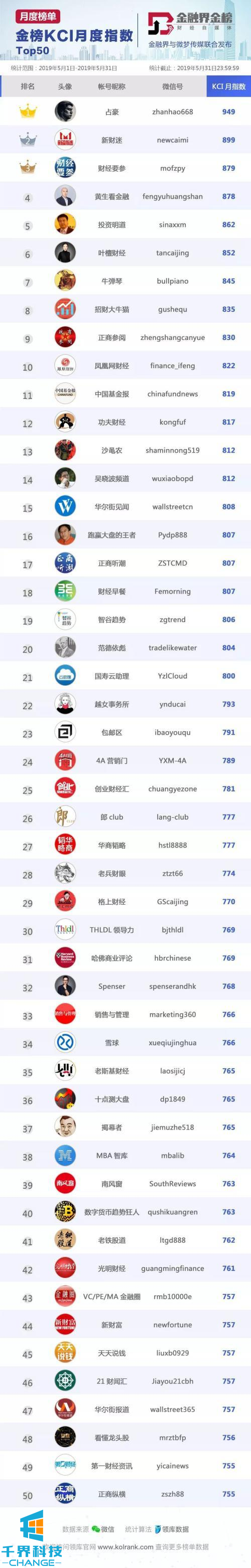 微夢傳媒聯合金融界,權威發布「金榜」題名—2019年5月份財經金融類公眾號影響力報告,旨在用數據洞察金融行業發展態勢!以便為廣大財經金融類自媒體人及合作伙伴帶來參考價值。報告統計時間為2019年5月1日—2019年5月31日。