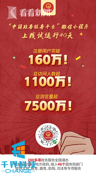 中國政務服務平臺”小程序訪問人數突破1100萬